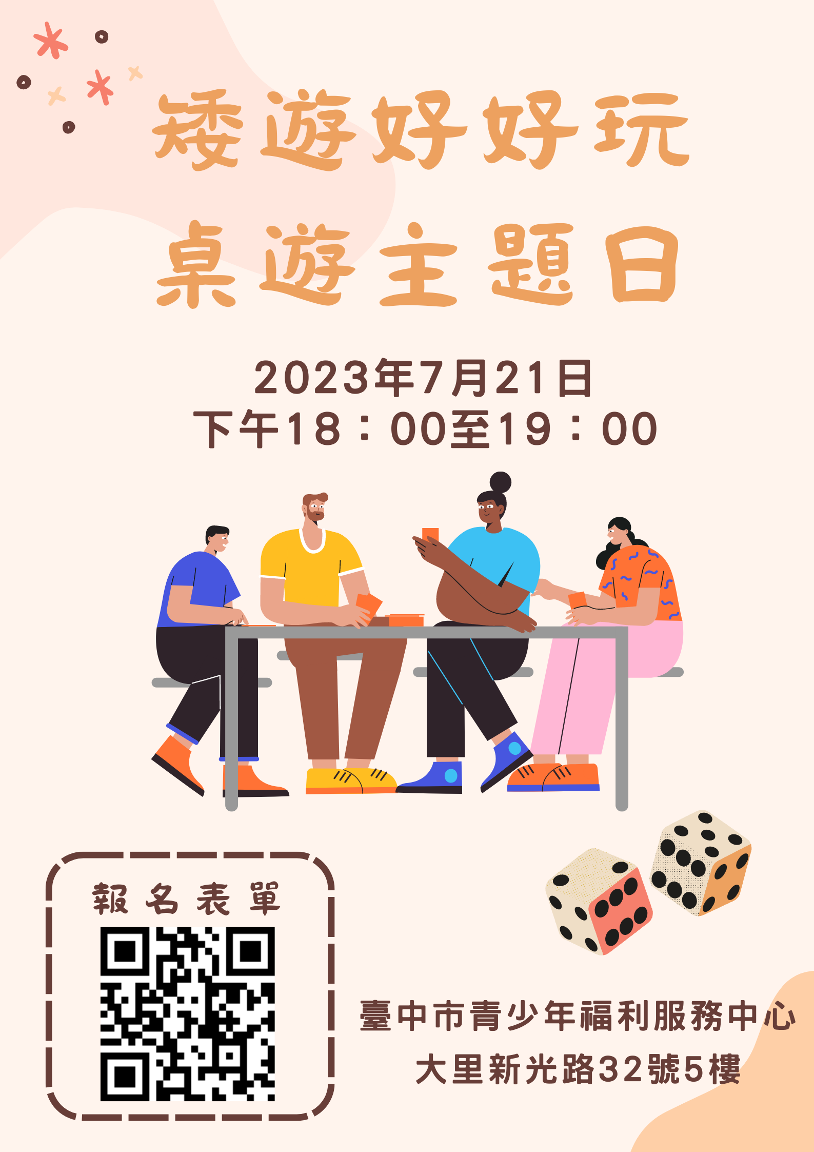 地點:青少年福利服務中心休閒室(台中市大里區新光路32號5F)